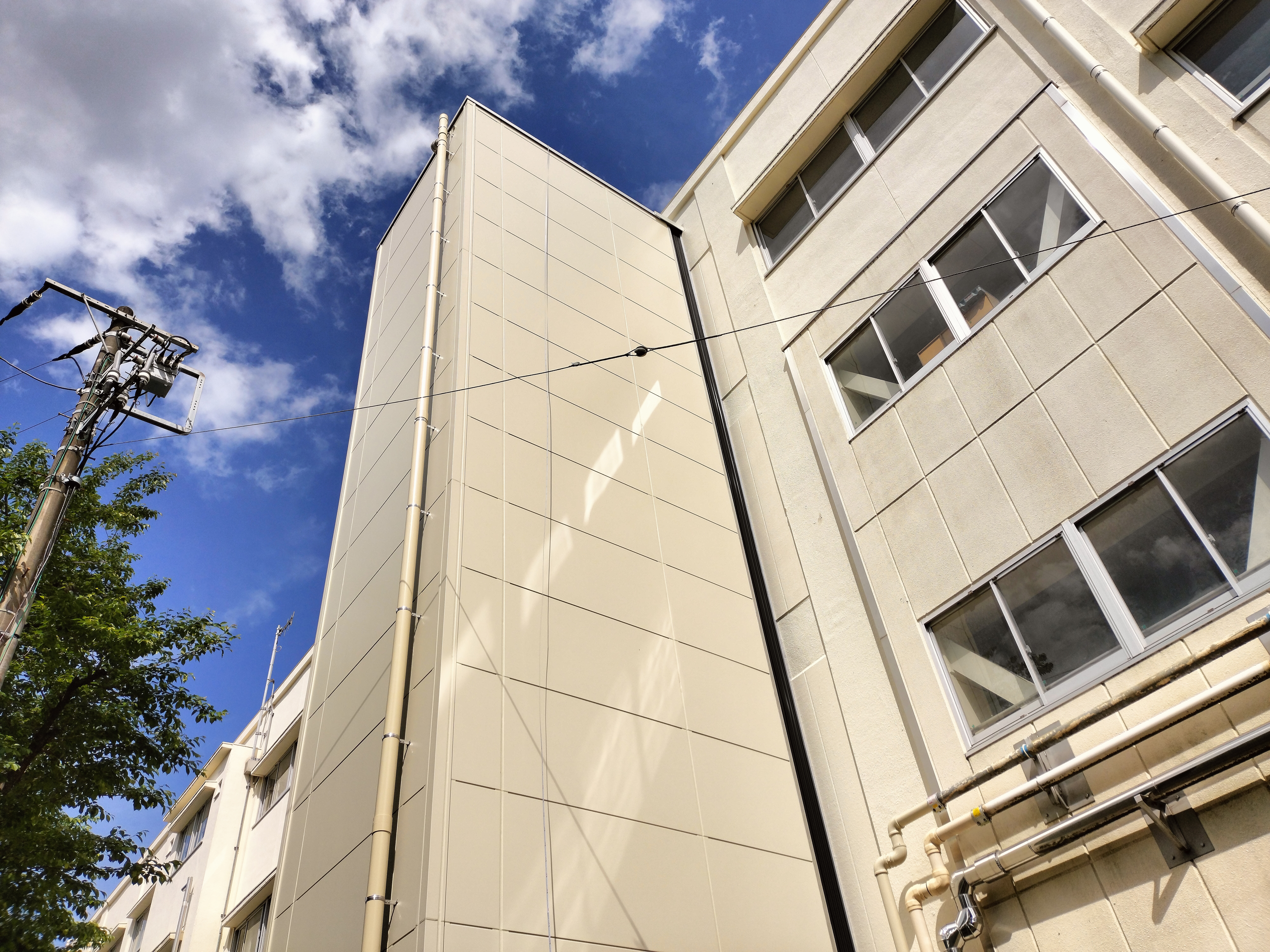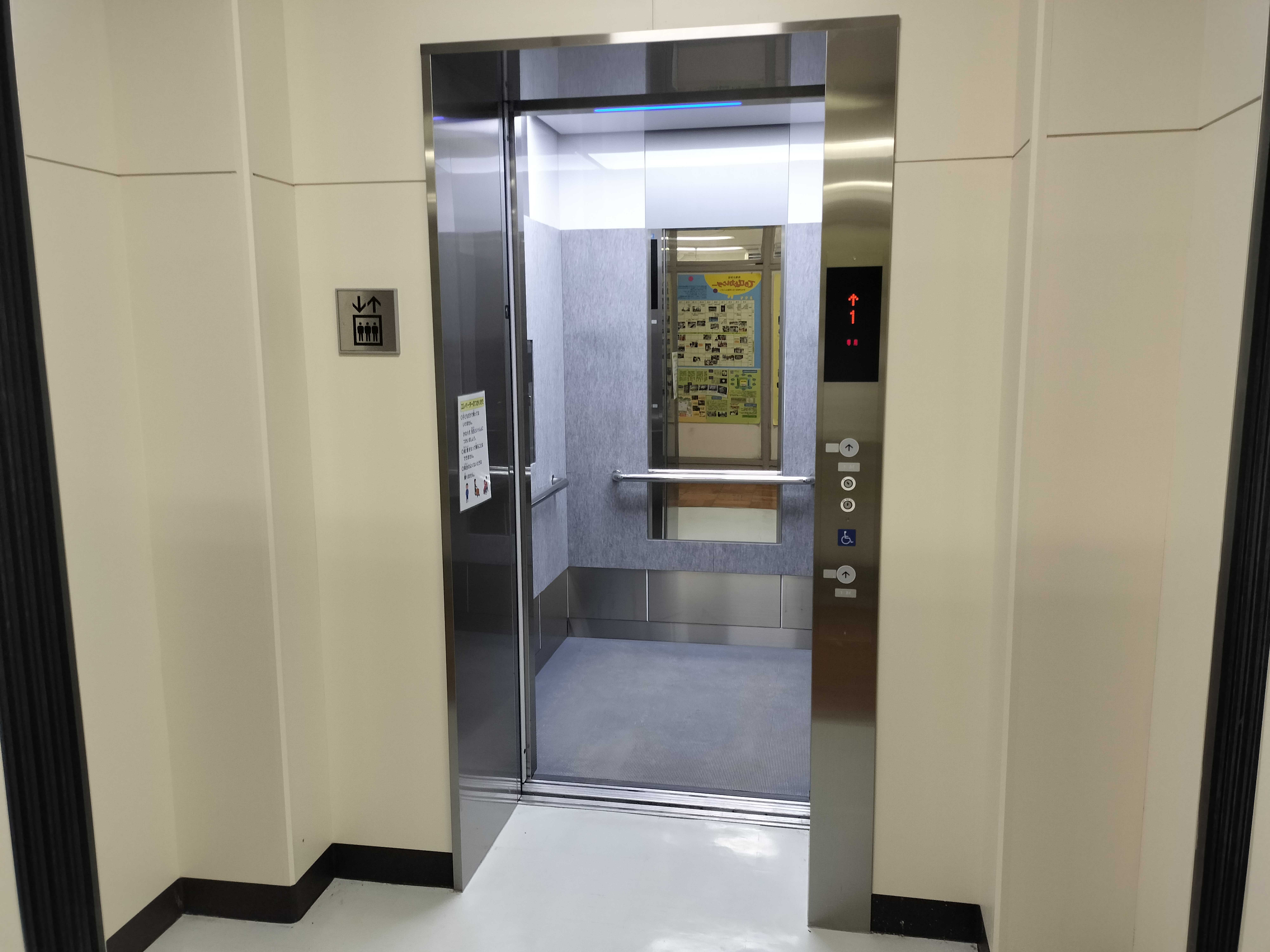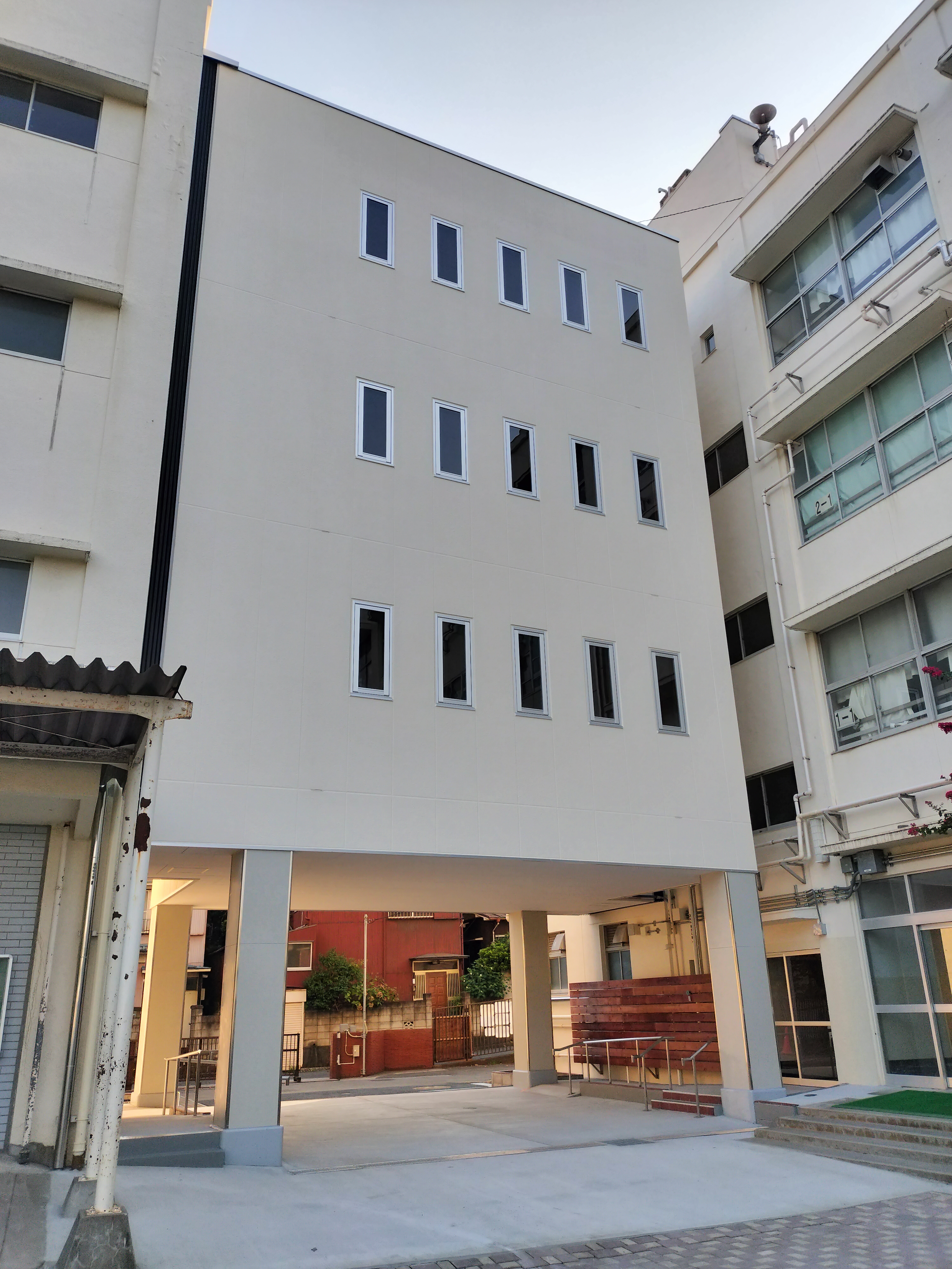 車いす利用者を想定したバリアフリー対策として、昇降機室棟・渡り廊下棟の増築、車いす対応トイレのの整備、渡り廊下棟の増築に伴う既存トイレ改修・既存教室改修及び法適合整備による学校全体の機能向上を目的として計画を実施。昇降機室は利用者動線の短縮、管理者の目が行き届く位置への配置、北側隣地住宅街への圧迫感軽減などに配慮した。校舎棟と特別教室棟をつなぐ渡り廊下は、棟間を繋ぐ機能向上と併せて積極的に木質化を図り、児童・職員の交流を促進する温かみのある空間となるよう整備した。自然採光・自然通風を確保し、明るく風通しのよい空間を提案し、特別教室棟へ向かう期待感を促す前室の様な役割を担えるように設計をおこなった。既存校舎間をつなぐ渡り廊下の配置、棟間の階高の調整など施工難易度の高い工事となった。
